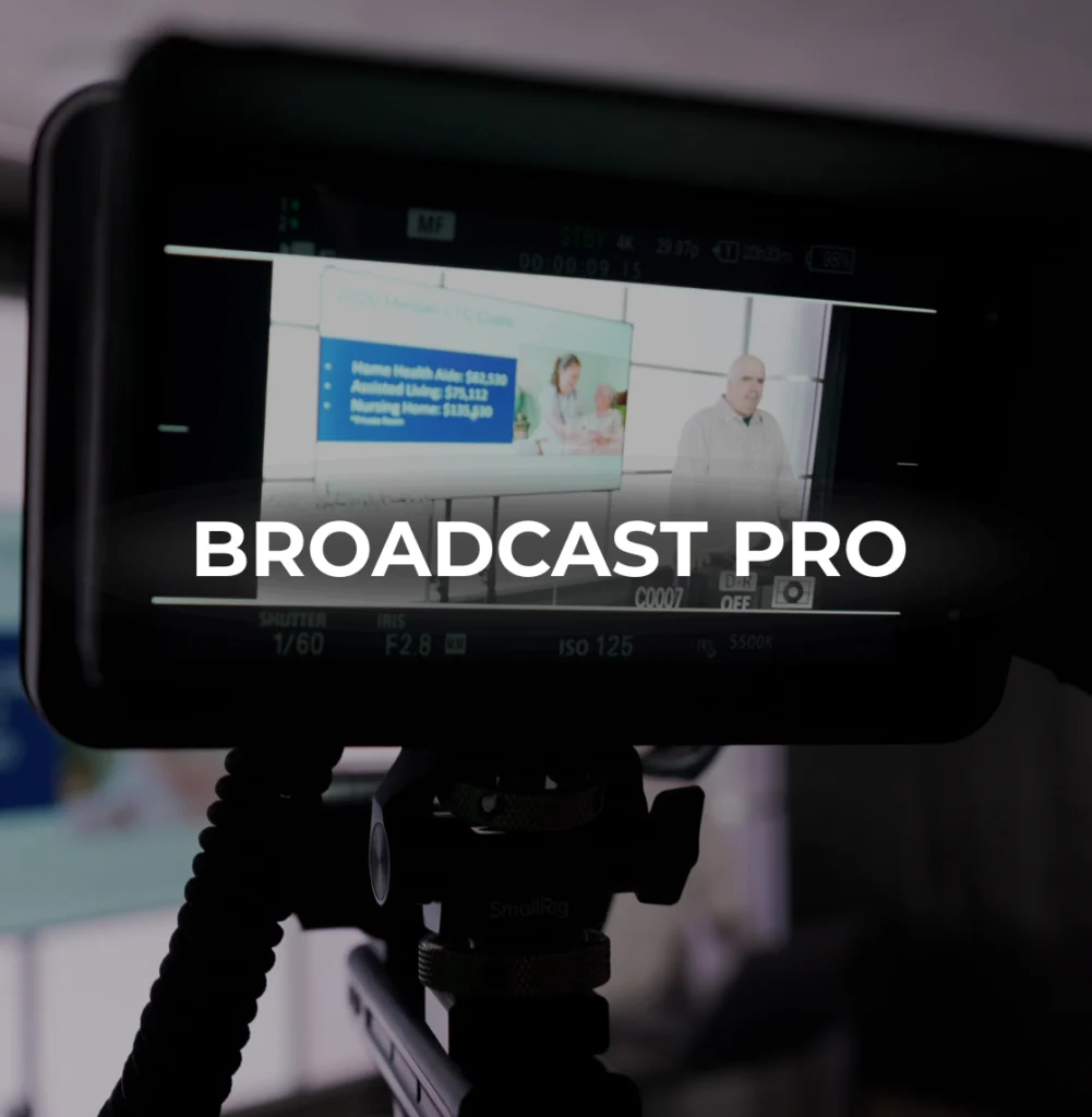 Deliver your message with a broadcast-quality presence. Broadcast Pro is built for professionals who need both long-form authority content and short-form clips that keep your brand active between major releases. This package includes 3 custom short-form videos plus 1 Signature Presentation Video (up to 1 hour), all produced in-studio with professional lighting, audio, on-set direction, and polished post-production with graphics, music, and motion elements as needed.